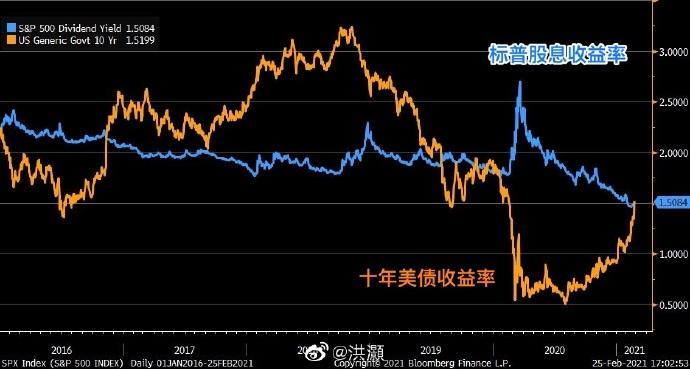 美债收益率飙升,10年期美债收益率突破1.6%,创一年以来新高;使10年期基准国债的收益率已高于标普500成分股的股息率。这意味着,股市对投资者的吸引力将被债市平分秋色。