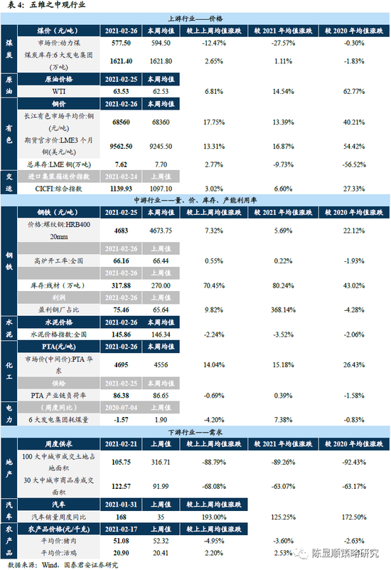 ▶ 交易通胀仍能持续,看好全球原材料周期。当前市场最大的矛盾,不是经济修复的矛盾,也不是流动性收紧的矛盾,而是通胀的斜率以及弹性。一方面表面上看,2021M1国内核心与非核心CPI以及PPI数据均未超预期更多地受春节错月效应的扰动,内需不弱环境下,中期风险不容忽视;另一方面当前美国5年期与10年期的TIPS通胀预期分别为2.39%与2.15%处于历史高位,考虑多数全球资源品供需缺口的可持续、产品涨价预期的“跟随式”抬升及权益市场对此的积极反馈,关注“量”方面国内资本强开支与海外供给弱回替+“价”方面上游涨价可持续与中下游成本可转嫁方向。