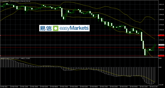 黄金因为美元指数上涨,以及市场追求流动性,多头出现获利了结出逃,令黄金暴跌。短线黄金深幅下跌,似乎空头力量得到了一定宣泄,目前上周五的低点1718美元附近形成了关键支撑参考位置,而早盘黄金持续上涨,在1732美元位置形成的平台突破位置,则是第一支撑。