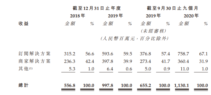 订阅解决方案:一系列SaaS产品,例如有赞微商城、有赞零售、有赞连锁、 有赞美业、及有赞教育。此外,凭借公司的有赞云及PaaS能力,公司亦为商家提供SaaS定制服务,并在有赞应用市场上提供第三方开发者的应用程序。