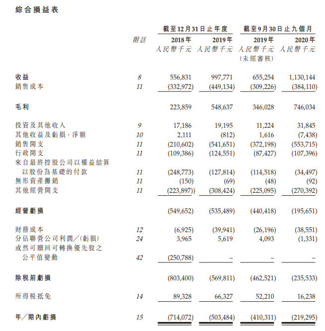 招股书显示,在过去的2018年、2019年和2020年前九个月,有赞科技的营业收入分别为人民币5.57亿、9.98亿和11.30亿元,相应的净亏损分别为人民币7.14亿、5.03亿和2.19亿元。
