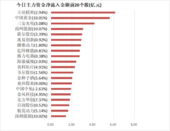 5、立讯精密主力资金净流入6.17亿元居首