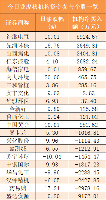 盘后龙虎榜数据显示,机构现身21股,其中许继电气等7股呈现机构资金净买入,盛达资源(维权)等14股呈现机构资金净卖出。