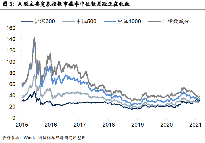 // 沪深300市盈率中位数历史首次超过中证500 //