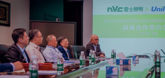 2月25日,雷士照明与洲明科技在雷士照明惠州总部举行战略合作签约仪式,宣布双方在产品研发和渠道资源的整合和共享达成战略合作。雷士照明CEO林良琦与洲明科技董事长林洺锋以及双方团队出席签约仪式。