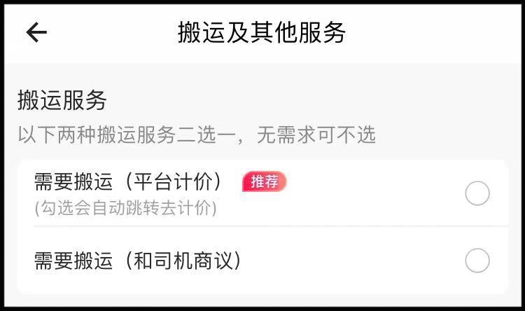 对于搬运费,货拉拉平台提供两种方案,一种是平台计价,一种是协商议价。