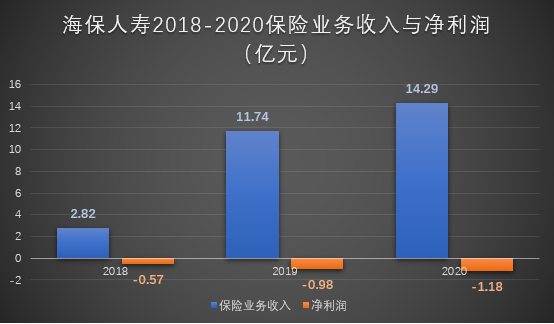 海保人寿成立于2018年,展业以来,其保险业务收入上涨趋势明显。2018年全年,公司保险业务收入为2.82亿元,2019年这一数据已经增长到11.74亿元。到了2020年,海保人寿实现保险业务收入14.29亿元。