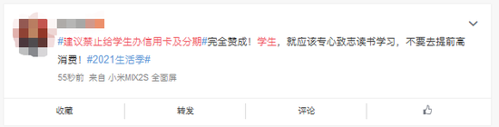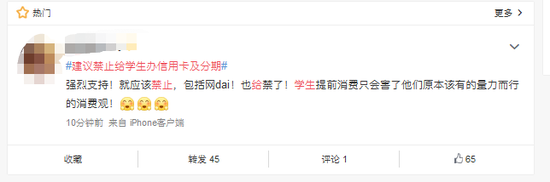对此,不少网友表示强烈支持,并认为学生提前消费“只会害了他们原本该有的量力而行的消费观。”