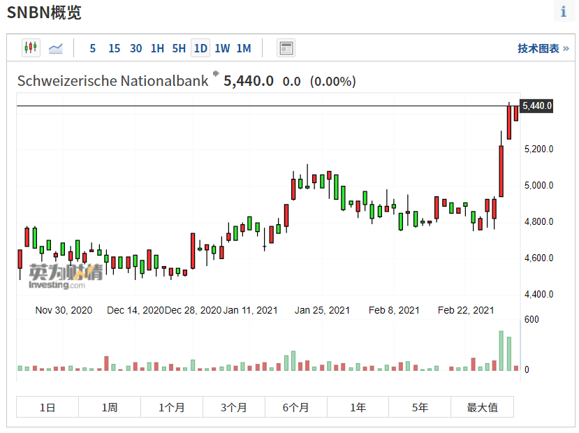 而此前的3个交易日,日本央行股价已经经历了大幅上涨,短短4个交易日的累计涨幅高达78%,令人咂舌。无独有偶,瑞士央行(SNBN)的股价也在短短2个交易日内,大涨超10%。