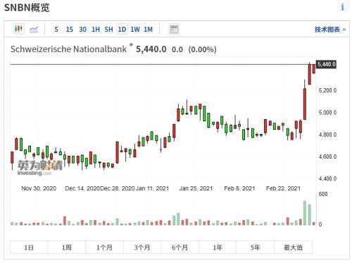 而此前的3个交易日,日本央行股价已经经历了大幅上涨,短短4个交易日的累计涨幅高达78%,令人咂舌。无独有偶,瑞士央行(SNBN)的股价也在短短2个交易日内,大涨超10%。