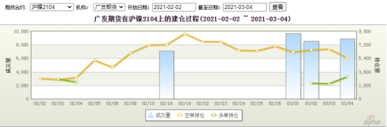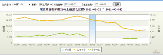 瑞达期货作为今日沪镍2104的第一大空头席位在2月19日达到了空头头寸持仓的最大值,而后逐步减仓至今日。