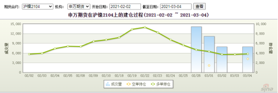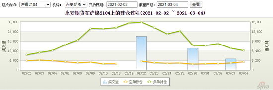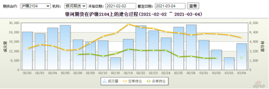 第二名银河期货席位空头头寸变化情况同瑞达期货,均是在2月19日达到空头持仓峰值而后减少,只是空头减仓力度弱于瑞达期货。