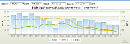 多头席位第二名中信期货在2月24日前一直是裸空头状态,而后逐渐维持在多空头寸均衡状态。