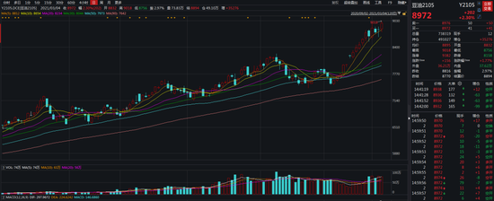 自2月份以来,豆油期价大幅度上涨,主力合约从7530元/吨一路飙涨至最高的9018元/吨,距万元大关越来越近,而这将近20%的涨幅主要依靠两大要素推动,一是天气市下供应预期收紧带来的美豆上行,其次又受植物油整体偏强影响油价联合上行,以及豆油期价大幅贴水支撑上涨空间。那么在市场多重利好的背景下,豆油破万还需多久呢?