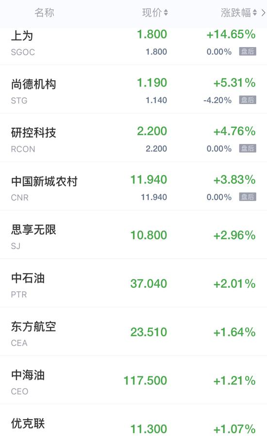 (截图来自新浪财经APP 行情-美股-中概股热门板块)下载新浪财经APP
