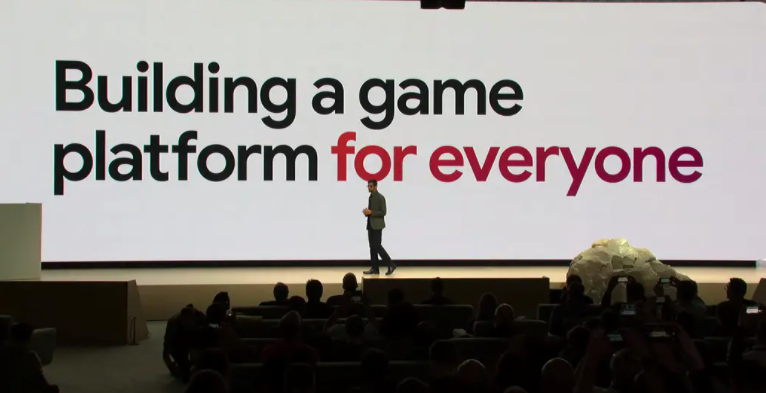 谷歌CEO Sundar Pichai站在台上宣布他们的这款新产品就是为所有玩家准备的游戏平台,并邀请这个新项目——Stadia的负责人 Phil Harrison上台为大家公布了更多的细节。Harrison上台后,坚定的表示:“这就是游戏的未来”,并宣布谷歌大举进入云游戏领域,让游戏玩家再也不需要付费购买高昂价格的游戏主机,而是在线就可以直接玩AAA级别的游戏。