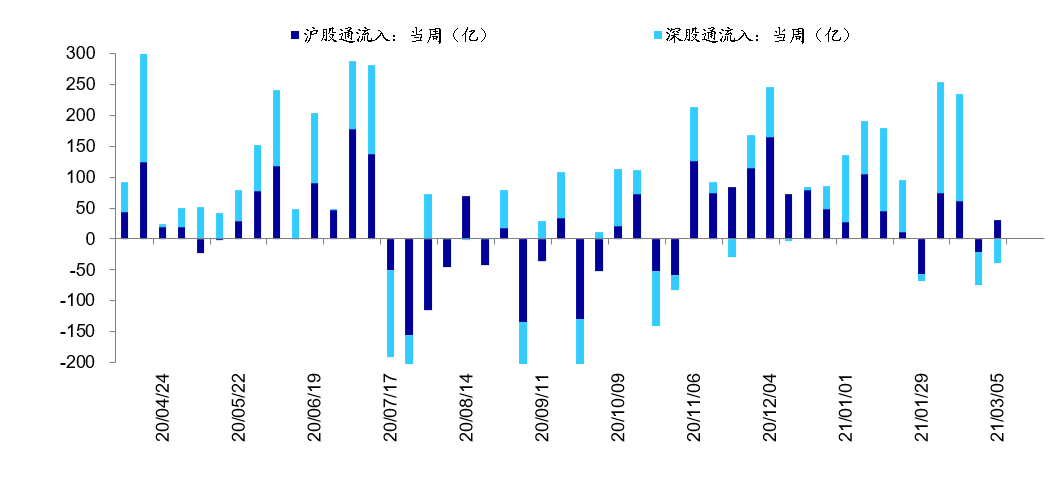 最近一周沪港通和深港通资金流出8亿元,而前一周流出75亿元。