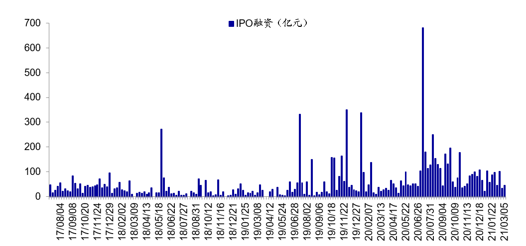 最近一周IPO融资规模为45亿元,前一周为33亿元。