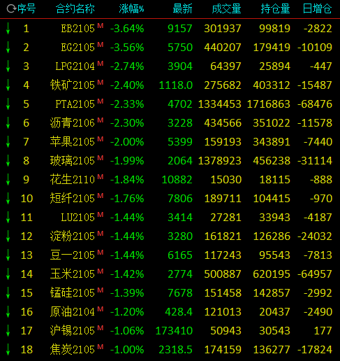 热点栏目3月9日,国内商品期市早盘涨跌互现,化工品分化,纯碱涨逾3%,苯乙烯、乙二醇跌超3%;黑色系多数下跌,铁矿石跌超2%,动力煤涨近2%;油脂油料中,菜油、豆油涨逾2%,花生跌近2%;基本金属涨跌分化,沪锌、沪铜涨逾1%,沪锡跌逾1%;农副产品普跌,苹果跌2%。