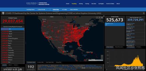 曾益新 图源:国新网根据美国约翰斯·霍普金斯大学统计数据,截至北京时间2021年3月9日6时25分,美国新冠肺炎累计确诊病例29037654例,累计死亡病例525673例。在过去约23小时里,美国新增确诊病例51947例,新增死亡病例738例。