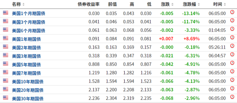 在顺利发行后,三年期美债收益率短线下挫,截至发稿时间日内暴挫6%。美国10年期国债收益率盘中跌至1.52%,是上周四以来最低水平,已经远离周一的高位1.62%。这是美国国债收益率五个交易日以来首次下跌。欧美市场呼应,英国和德国基准国债收益率均下降。