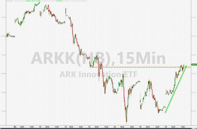 明星经理Cathie Wood麾下旗舰基金ARK Innovation ETF继连续两周至少各10%的下跌后,创出11%的纪录最大涨幅。