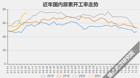 供应端来看,据隆众资讯统计,截止2月24日当周,国内尿素周均日产15.83万吨,较上月同期增加4万吨,较去年同期增加1.45万吨;周均尿素开工率在74.9%,较上月同期增加提升18.55%,较去年同期提升9.62%。