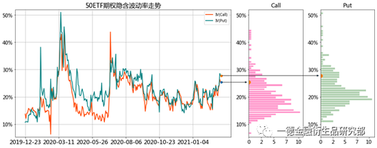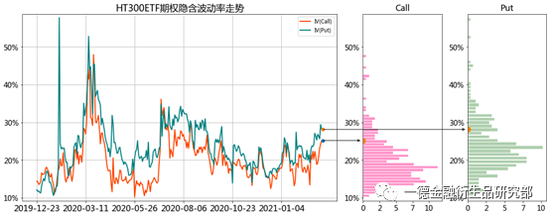 在近期各标的指数日内波动幅度较大的背景下,金融期权日内波动率亦出现较为明显的波动,今日50ETF期权波动率指数最高升至31.08,日内最低为26.60。而从近日的市场情绪来看,市场下跌显著推升隐含波动率走高,市场上涨则一定程度稳定市场情绪。