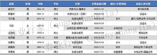 公开信息显示,东海证券在2020年中完成了董监高换届。目前,主要高管团队名单如下:
