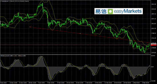 3月11日,周三美国国会通过了1.9万亿财政刺激计划,这刺激到了投资人情绪升温,非美货币兑美元纷纷走强,而道指走势强劲目前已经创出历史高点。黄金再多头资金关照下连续第二天上涨,目前以及触及1726美元。