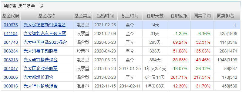 基金经理:魏晓雪