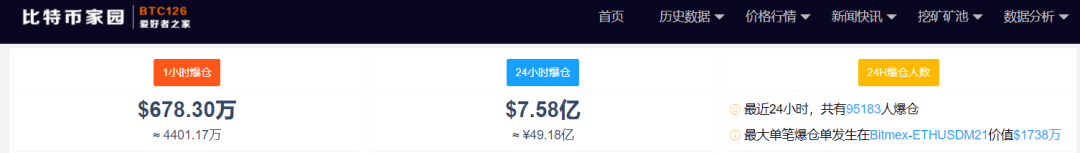 另据比特币家园网站数据,截至发稿,比特币在24小时内 爆仓 49亿,24小时9.5万人爆仓。