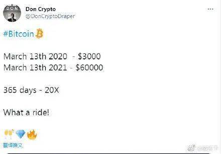 原标题:一年涨了2000%!比特币历史上首次触及6万美元大关,下一个高点剑指7万美元? 来源:华尔街见闻