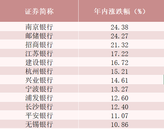 2021年以来,银行股表现颇为亮眼。38家上市银行中,共有28家银行实现上涨,有12家银行涨幅超过10%。其中,南京银行、邮储银行、招商银行涨幅更是超过了20%。