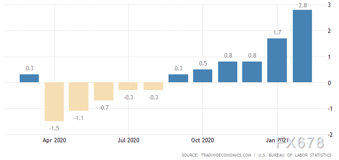 2月份生产者价格指数同比上涨2.8%,高于1月份1.7%的升幅