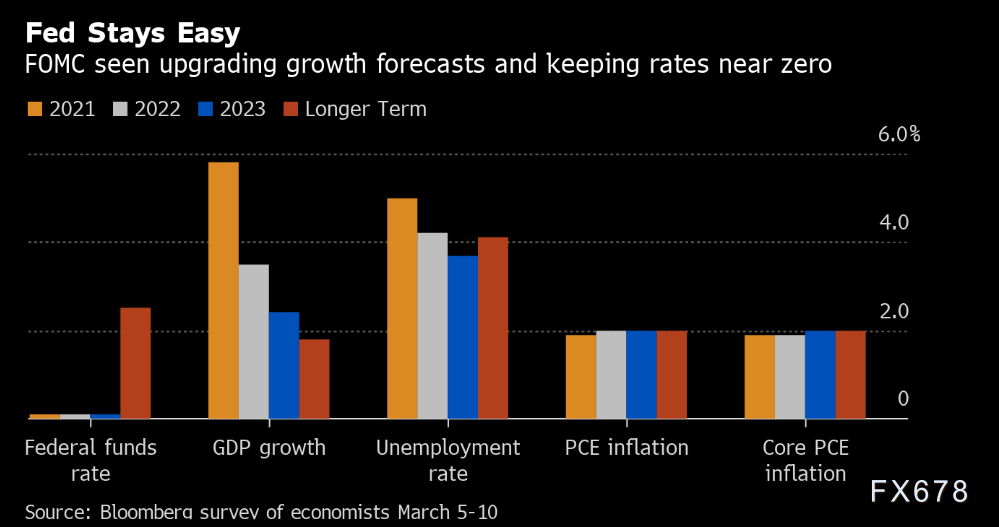 41位经济学家在3月5日至10日期间接受此次调查,他们预期FOMC将上调2021年经济增长预估并略微提高通胀预期,但不会将缩减资产购买或加息的时间表提前。