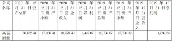 数据显示,2019年高酱酒业没有营业收入,且净亏-1888万元;而2020年,高酱酒业实现营业收入约为1.06亿元,净利润约为1425万元。