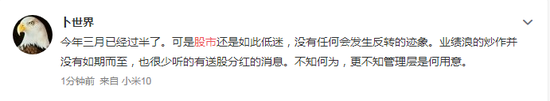 不少基民表示,打开微博看见基金又挂在热搜榜上,准没好事。也有网友对于股市的走势表示担忧,认为业绩炒作并未如期而至。