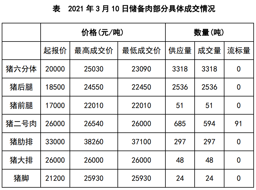 进入2021年以来,储备肉投放频次仍然不减,且成交情况较为乐观,致使白条肉价不断“降温”。本文将详细分析储备肉具体成交情况,以及白条肉短期行情变化,简要预测后市白条肉价走势。