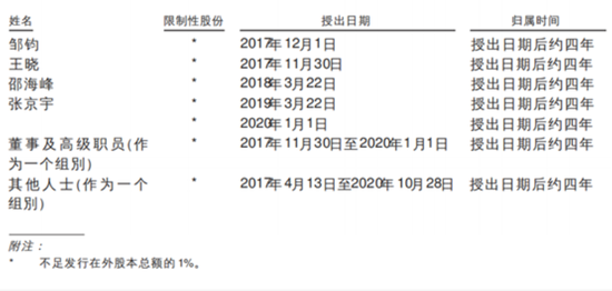 除了期权外,2016年股权激励计划还包括限制性股份奖励。限制性股份奖励发行股份最大数目为12,000,000股,截至2020年12月31日,有3,281,244股限制性股份发行在外。