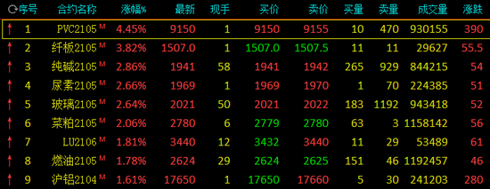 热点栏目3月15日,国内商品期市收盘涨跌互现,截至下午收盘,PVC涨逾4%,尿素、纯碱、玻璃涨逾2%;跌幅方面,黑色系多数下跌,硅铁跌超4%,铁矿、焦煤、焦炭跌超3%。农副产品涨跌互现,鸡蛋跌超4%,菜粕涨逾2%。