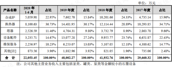 目前,公开渠道暂无石墨塔器的市场规模数据。2018和2019年石墨塔营收增长超25%;2020年上半年,石墨塔收入0.25亿元,约为2019的54%。