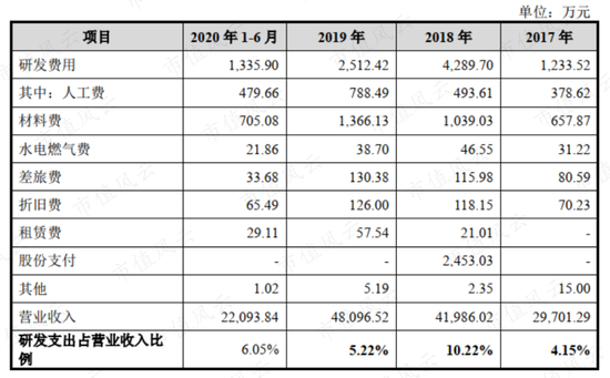 由于收入规模有限,星球石墨的研发投入也不算高,全部费用化处理,每年研发投入约占收入的5%左右。2018年研发投入高达10.22%,主要是有2,453万元员工股权激励成本计入研发费用,约占当年研发投入的57%,剔除后也就5%左右。