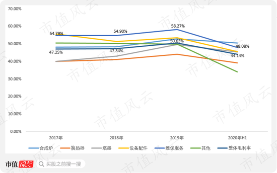 星球石墨合成炉收入增长不稳定,2018年由于石墨价格上涨及客户需求临时增长收入翻倍,2019年收入又下滑25.48%。2020年上半年合成炉营收0.51亿元,约为2018年营收的50%。