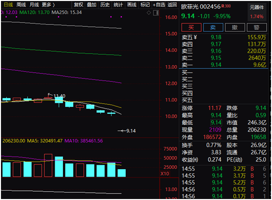受到上述消息影响,欧菲光股票今天封住跌停。