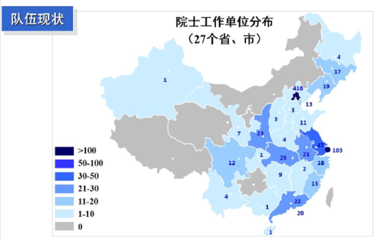 (中国工程院院士工作地分布图,统计于2020年5月)