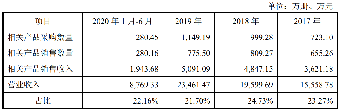 这一查华夏万卷发现,涉及的产品2017年至2020年上半年的营业收入分别达3621.18万元、4847.15万元、5091.09万元、1943.68万元,占总营业收入的比重分别为23.27%、24.73%、21.7%、22.16%。