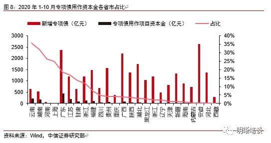 专项债方面,项目收益性要求可能在一定程度上影响专项债作为资本金对基建的撬动作用。2020年7月29日,财政部强调要加快专项债发行使用,并力争10月底前发行完毕。根据Wind数据,2020年1-10月新增专项债用作资本金的项目共有685个,涉及项目资本金共计3789亿元。专项债用作项目资本金占比约为6.70%,距离25%的项目资本金占比上限有一定差距。事实上,根据《预算法实施条例》,政府性基金预算应当根据基金项目收入情况和实际支出需要以收定支;专项债务则是指列入政府性基金预算用于有收益的公益性事业发展的专项债券,因此财政部门对专项债所投项目的收益性也有一定要求。在现实操作中,当地方政府申报项目后一般可以获得相应的地方债券筹资额度,但在项目开工之前往往还需要一定的审批流程,若有项目准备不充分、项目质量不足等问题,可能会导致项目无法开工以及停止实施等情况,进而导致专项债用做资本金的比重远低于上限水平。从这个角度出发,我们认为不应对专项债作为资本金对基建的撬动作用过度高估。