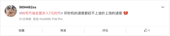 新闻一出,网友纷纷感叹:“开不起车了”、“印钞机的速度都赶不上油价上涨的速度”。