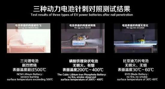 相对而言,刀片电池属于磷酸铁锂电池,安全性高,并且获得了与三元锂电池相媲美的能量密度。